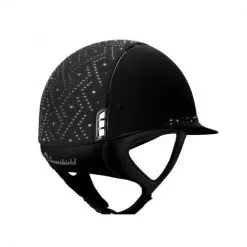 Samshield’s latest hat design provides a real touch of understated elegance – pairing the sparkle of 255 Jet Hematite crystals with a matt black trim and blazon.