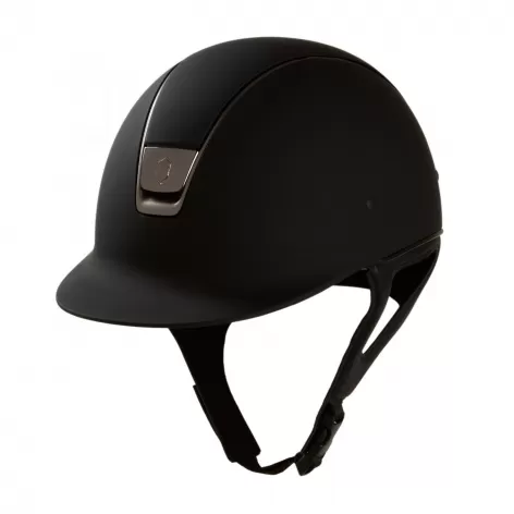 The Samshield Shadowmatt riding hat has a black matt coated shell and top panel with titanium trim for an elegant and understated look.