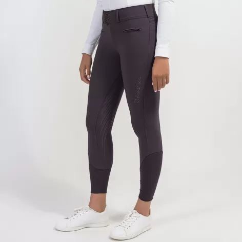 The Clara breeches features subtle yet striking details, including Swarovski crystal fabric embellishment on the back pockets, tone-on-tone Swarovski crystal Samshield lettering on the thigh and carefully placed seams that offer a streamlined appearance.