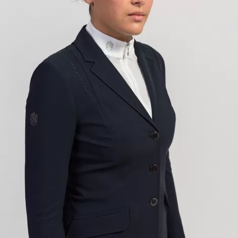 This show jacket is designed to provide comfort and technical performance for riders. It is made from a highly breathable technical fabric which guarantees an excellent close fit, superior freedom of movement, a comfortable lightweight feel, and long-lasting durability. The special construction of the fabric also protects you against ultraviolet rays.
