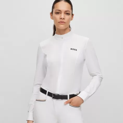 For a premium quality white competition shirt, look no further than the BOSS Equestrian Emma, with a classic design and sleek branded details.