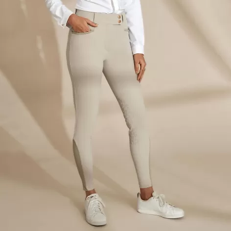 The highly technical DADA Sport Kit Knee Grip Breeches in Beige add a dash of understated French designer elegance to your equestrian competition outfit.
