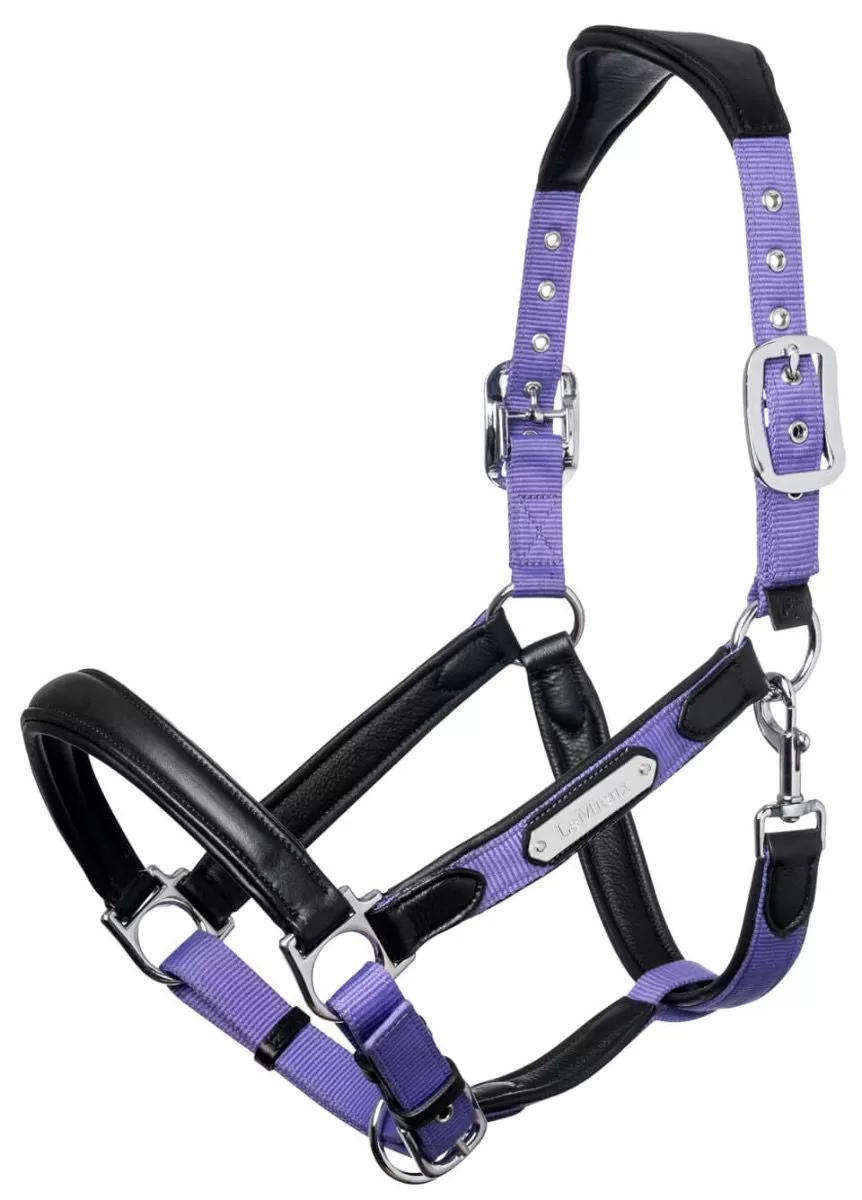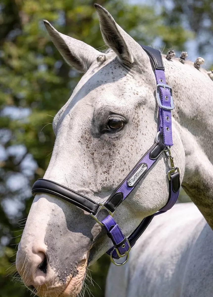 This luxury leather headcollar is beautifully crafted with soft leather, strong nylon and solid metal fittings for a high quality stylish finish. The wide, contoured, pressure relieving headpiece provides maximum comfort along with padded leather lined throat lash, cheeks and noseband.