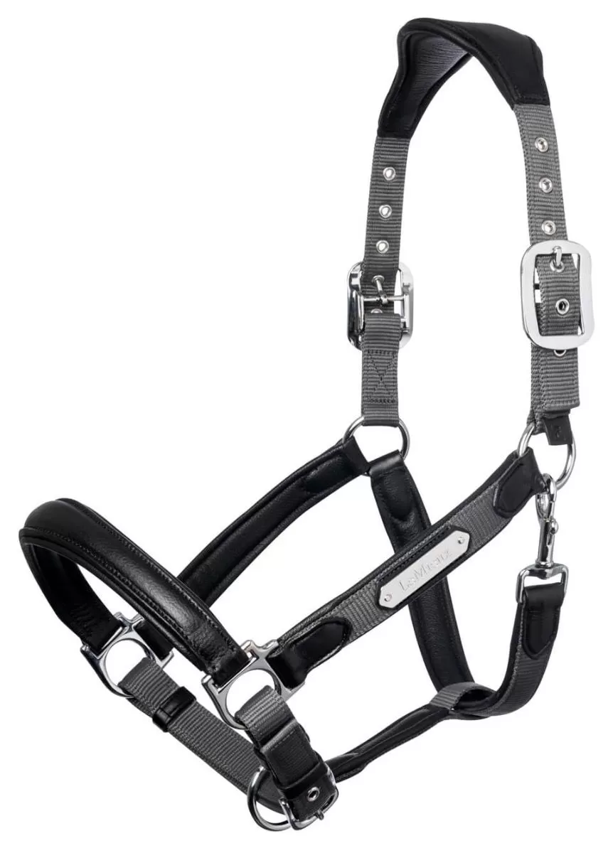 This luxury leather headcollar is beautifully crafted with soft leather, strong nylon and solid metal fittings for a high quality stylish finish. The wide, contoured, pressure relieving headpiece provides maximum comfort along with padded leather lined throat lash, cheeks and noseband.
