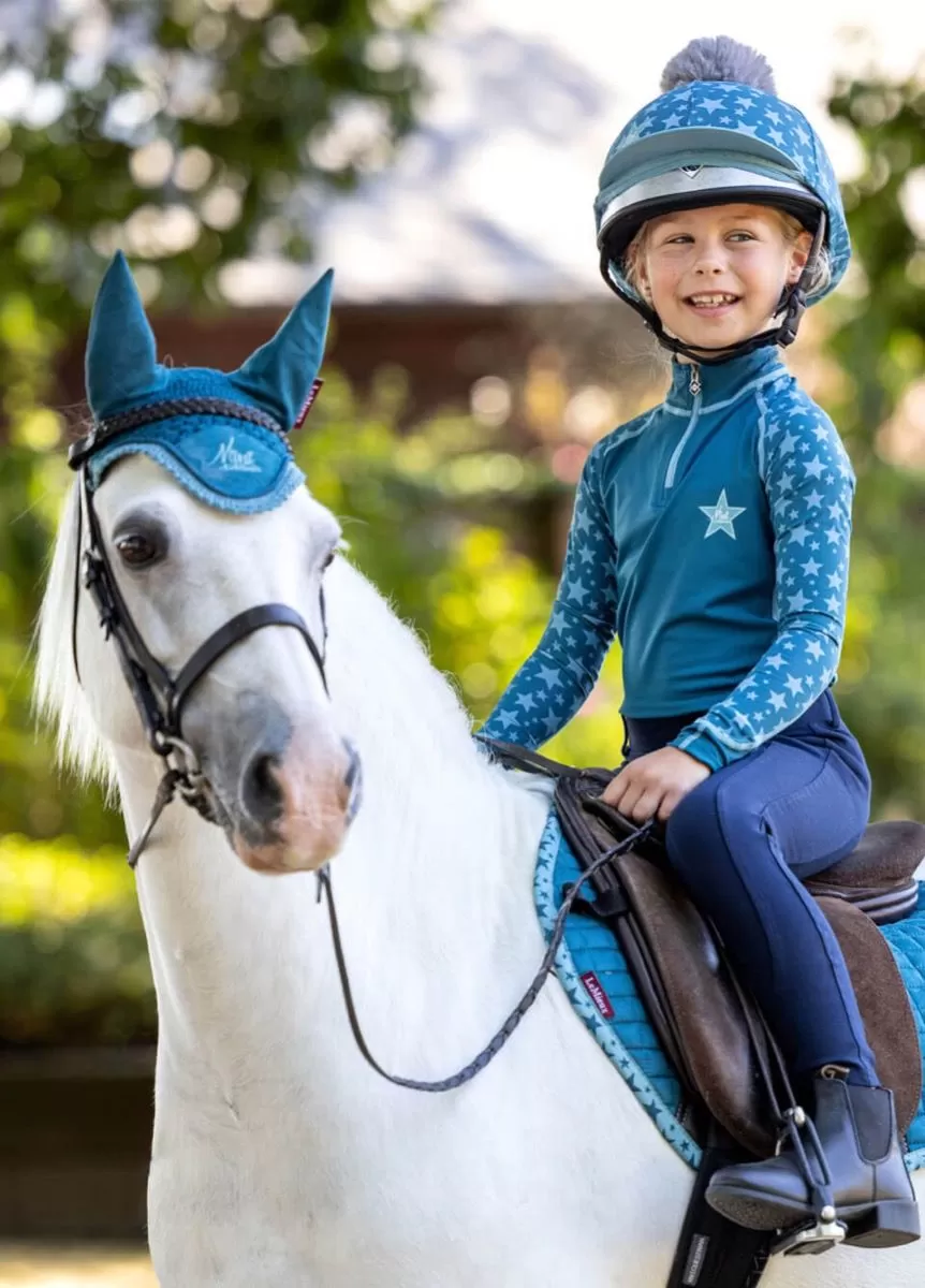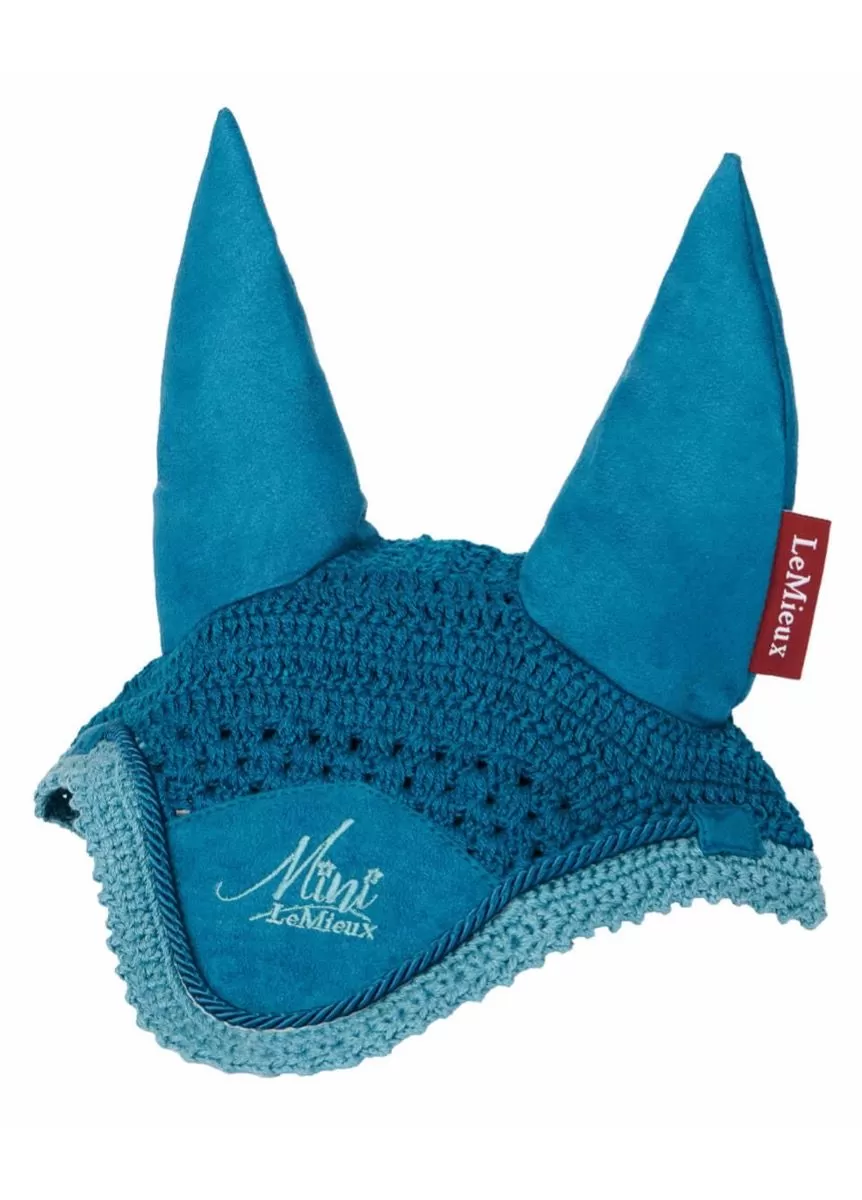 At last a premium designer collection for Kids! Mini LeMieux is intended to appeal to the under twelves with an eye for style. Designed particularly for 11.2hh to 13hh ponies, the Mini LeMieux Fly Hood is hand made from two styles of close-knit crochet with comfortable high-density fabric ears that soften sound. Suede embroidered detailing and colour matched braid complete the range