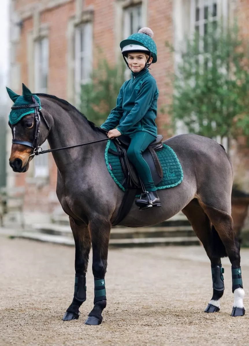 Mini LeMieux is intended to appeal to the under twelves with an eye for style. Sharing all the same technical spec as the main LeMieux saddle pads with 100% Natural Bamboo linings, high wither, strengthened girth protection areas and girth strap locking loops. These beautiful pads are made with a luxury suede top side and signature polka dot binding unique to the range. The Mini LeMieux collection is completed with small matching brushing boots and hand crocheted fly hood all designed particularly for 11.2hh to 13hh ponies