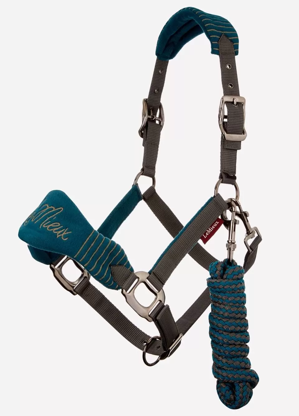 The Le Mieux Vogue Headcollar & Leadrope Set includes a snap hook fasten soft lead rope.