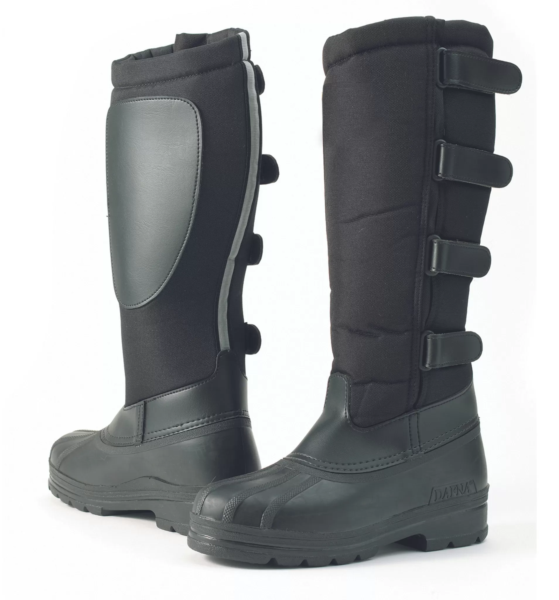 The Ovation Blizzard Winter Boots are extremely durable, comfortable and warm fleece-lined synthetic canvas boot with wool & aluminum foil lined insole. Features include a 600 Denier water-repellent polyester canvas outer shaft which is laminated to a moisture-absorbent foam as well as an inner layer of fleece. This creates an insulated air layer designed to give extreme comfort in cold weather situations. The insulated multi-layer fleece insole also has an aluminum foil heat shield for added warmth.