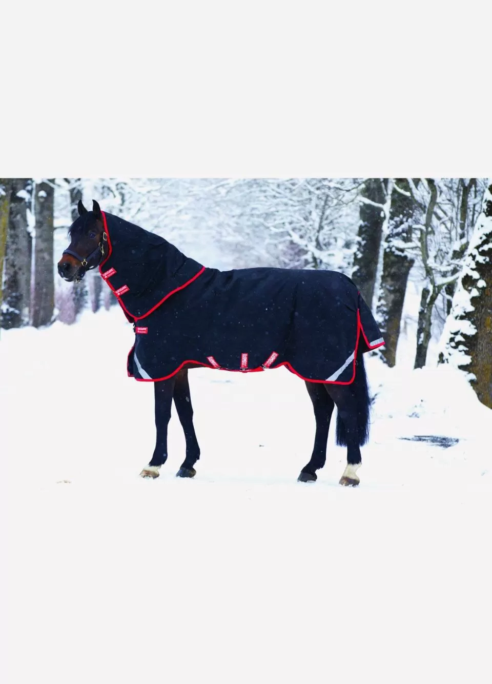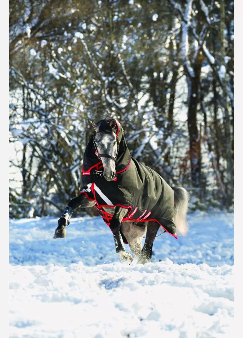 The Vari-Layer concentrates the layering of compression resistant fibre to targeted areas, which can increase the thermal values by 30% and reduce weight by 20%. Vari-Layer™ increases fibre coverage across the back and hips to decrease heat loss. This layering of fibre allows the rug to wrap more closely around the horse, trapping heat with less weight in the overall rug. The effect of gravity compression on the rug fill is lessened and your rug stays fuller for longer. There is 450g of fill in the body and 250g in the detachable hood.