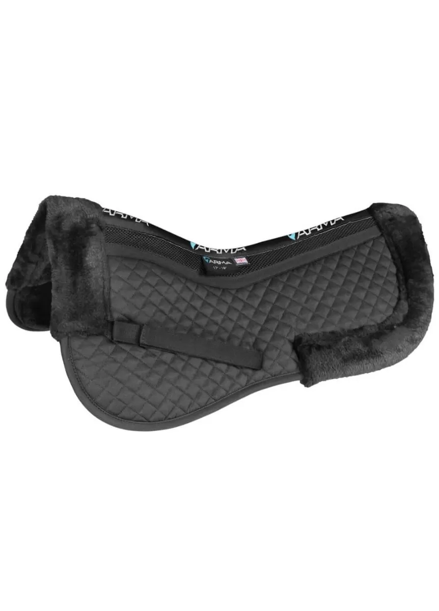 For horses requiring extra protection, this ARMA fully lined half pad offers soft cushioning to reduce pressure whilst the fleece and spine venting increase airflow. Fleecy lining for comfortable cushioning on key pressure points. Foam core under saddle section for enhanced comfort. AIR MOTION lightweight and highly breathable 3D technology keeps the horse cool and dry. Girth guides and touch close retaining straps.