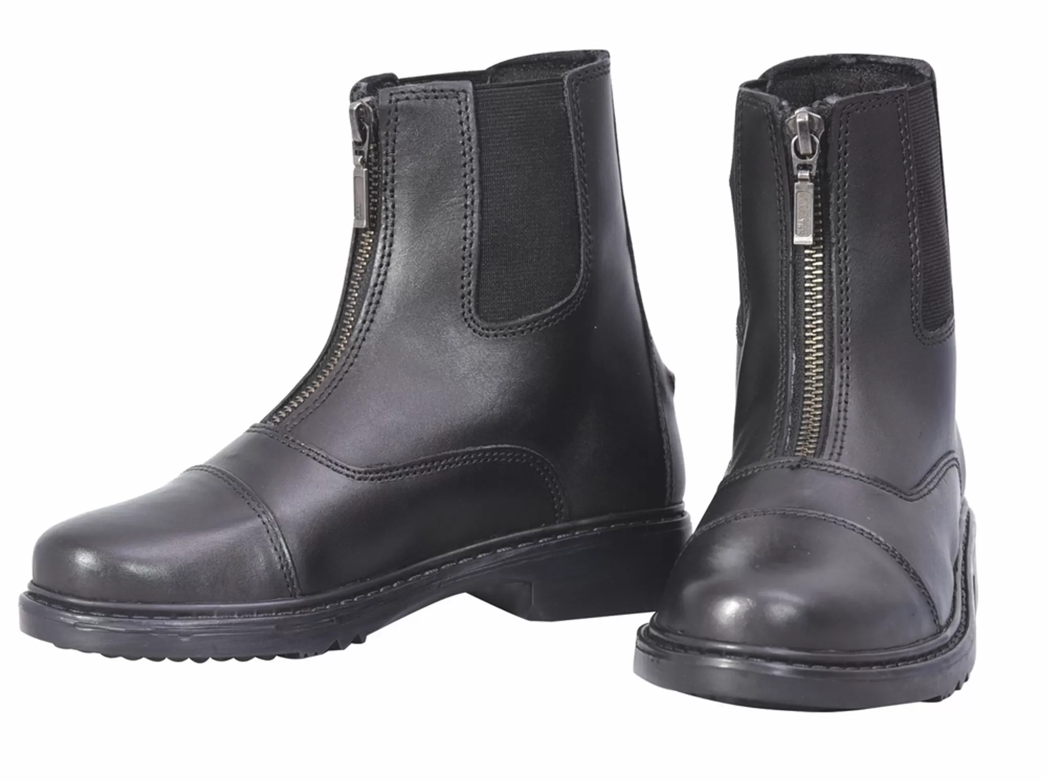 TuffRider Children’s Perfect Front Zip Paddock Boots are the perfect pair for kid equestrians. These paddock boots are great for schooling or showing. The Perfect Front Zip Paddock Boots have all must-have features like front zip closures, elastic side gussets, and spur rests. These boots are also water resistant thanks to a durable leather exterior paired with a rubber outsole. These paddock boots are finished with a rounded, plain toe cap.