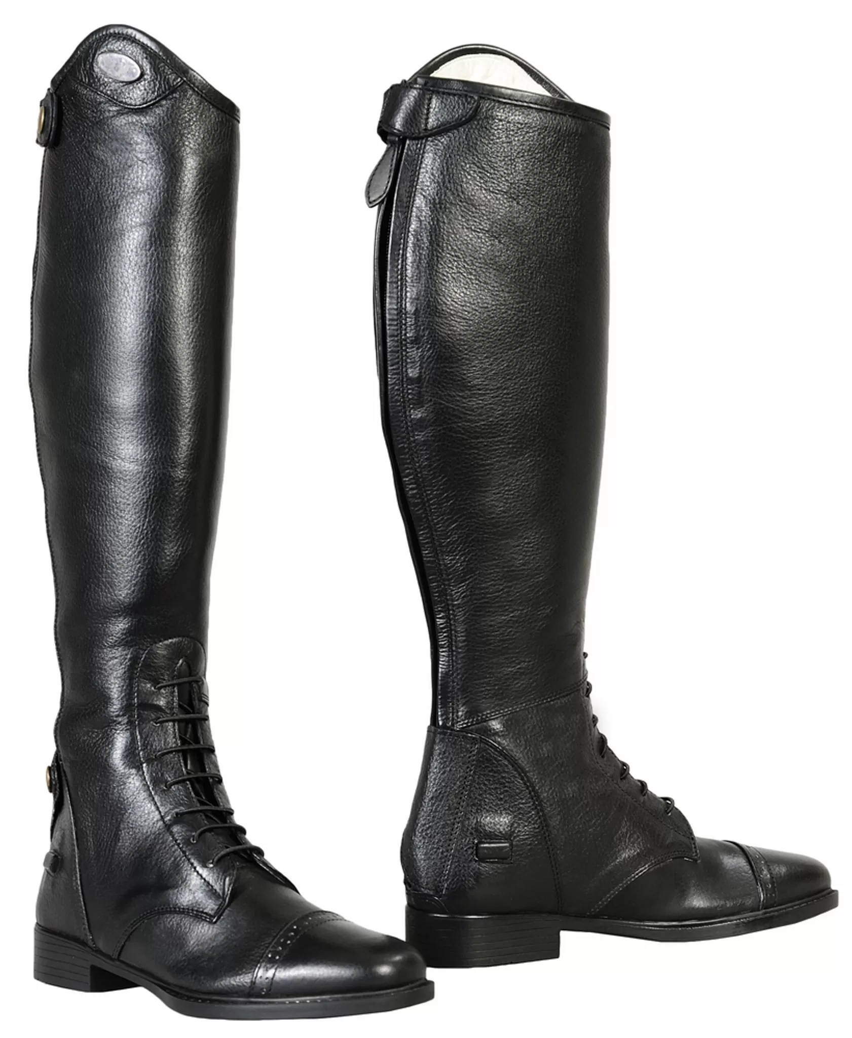 The TuffRider Ladies’ Belmont Field Boots are made with the equestrian’s comfort in mind. Crafted with soft and supple leather, this elegantly styled, fully-lined boot features a punched toe cap, two side spur rests, and a moderate Spanish top with the TuffRider emblem at the knee. To provide the fit and feel of a custom boot, the fully-lined Belmont Field Boot has a full-length rear zipper bordered by a full elastic gusset, a snap keeper at the knee and ankle, and a comfortable, memory foam foot bed.