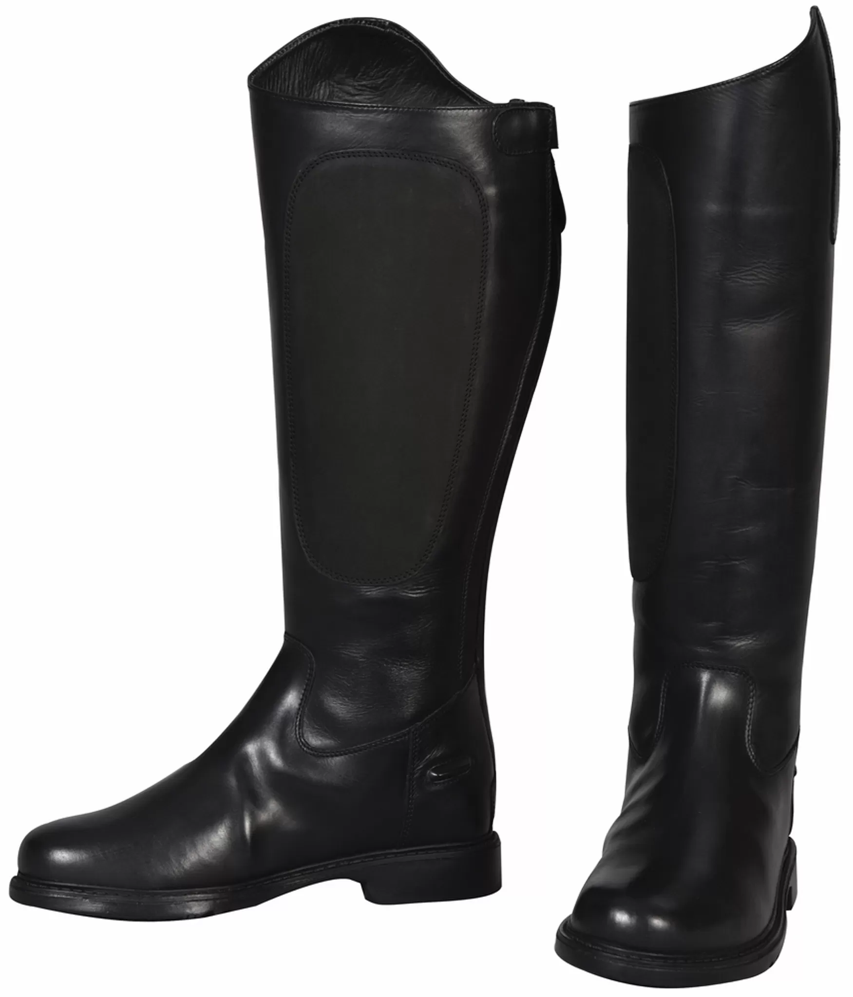 The TuffRider Ladies Plus Rider Dress Boots are soft leather, tall equestrian boots with a wider calf. The two, stretchable leather gussets on each side of the zipper will conform to your calf for the ultimate fit while a breathable mesh lining and memory foam foot bed keep your feet in cool, cloud-like comfort. The reinforced patch on the inner calf provides extra grip and longer wear. Look and feel your best in these beautiful wide calf English riding boots from TuffRider!
