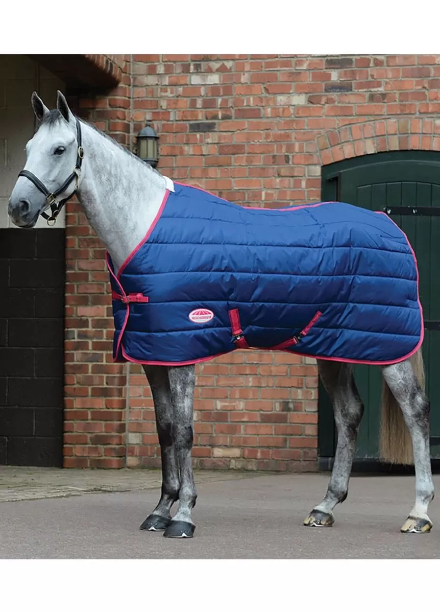 A great every day stable rug: The WeatherBeeta ComFiTec 210D Channel Quilt Standard Neck Medium stable rug features a 210 denier channel quilted outer with a 210T polyester lining, warm 250g of polyfill with channel quilt design to keep the polyfill in place for optimum coverage and single adjustable front buckle closure with touch tape, twin low cross surcingles and tail cord.