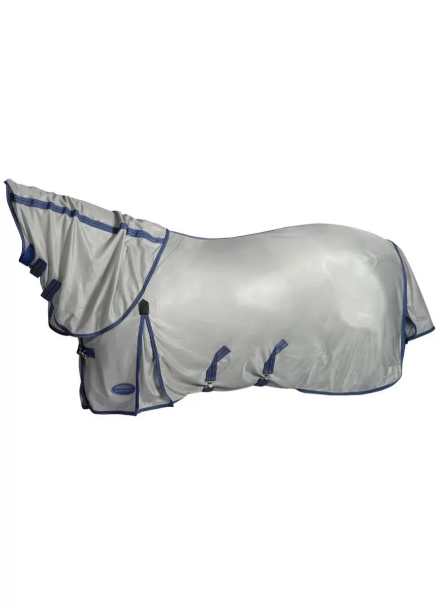 A great option for the sensibly rugged horse that can be highly sensitive. Offers high protection from UV, flies and bugs: The WeatherBeeta ComFiTec Airflow II Detach-A-Neck has a soft and durable polyester mesh outer that is breathable and provides insect protection with 75%+ UV block and Detach-A-Neck for versatility. Featuring an Ultra belly wrap for extra protection, full wrap tail flap that has a two piece design that wraps around the horses quarter’s for maximum protection, Ezi-clip front closure with touch tape, fast and easy to use, traditional side gusset for freedom of movement, 210T lined shoulders, mane and tail flap and elasticated, adjustable and removable leg straps.