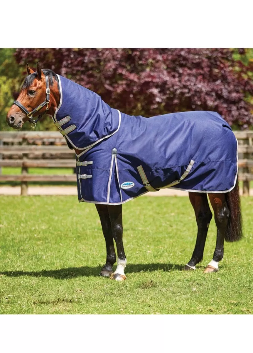 Strong, classic style at a great price. The WeatherBeeta ComFiTec Essential Detach-A-Neck Medium features a strong and durable 1200 denier ripstop outer shell with repel shell coating that is both waterproof and breathable with 220g of polyfill. Featuring a smooth and durable 210T polyester lining, traditional side gusset for natural movement, twin adjustable buckle front closure, adjustable & removable leg straps, twin low cross surcingles and standard tail flap. Hydrostatic pressure tested to 2000mm plus. Moisture vapour tested to 3000g/m2 plus. 3 year warranty on hardware, waterproofness and breathability on turnouts.