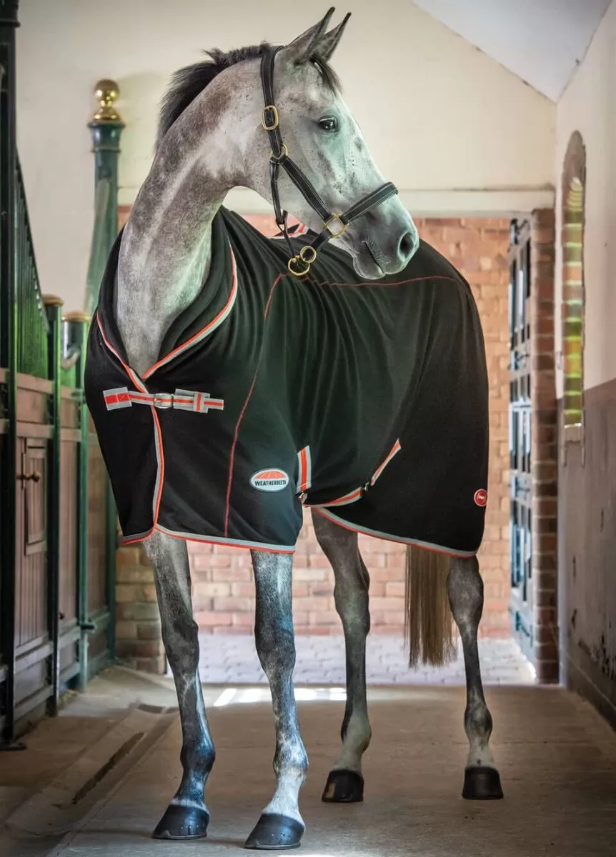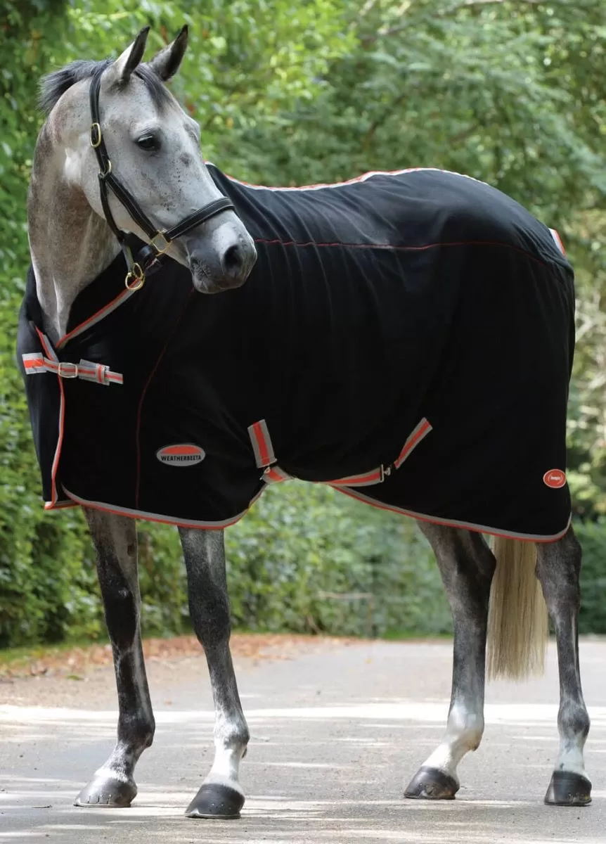 The WeatherBeeta Therapy-Tec Fleece Standard Neck is an ideal choice pre, post exercise or whilst travelling. Features include ceramic fabric technology to reflect the horses own body heat, Cozi-collar for additional comfort; adjustable buckle front closure with touch tape, twin low cross surcingles and tail cord. Therapy Tec is designed to increase your horse’s muscle function to reduce the risk of injury whilst warming up, by preparing the muscles for exercise. Also assists in recovery after work by reducing lactic acid build up which can decrease recovery time and improves the healing process of prior injuries. The perfect choice for optimum performance and for your horse’s complete comfort before and after exercise. *Not recommended for in foal mares