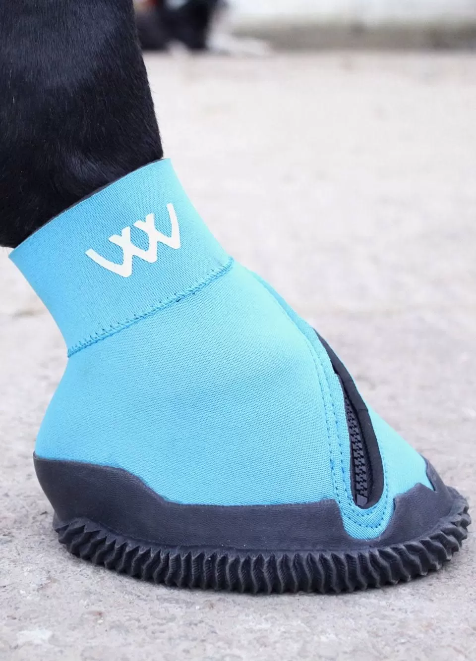 Woof recommend an over reach boot is worn over the top to help prevent the horse from pulling the boot off in the field, as they are always so exhuberant after a time in the stable.